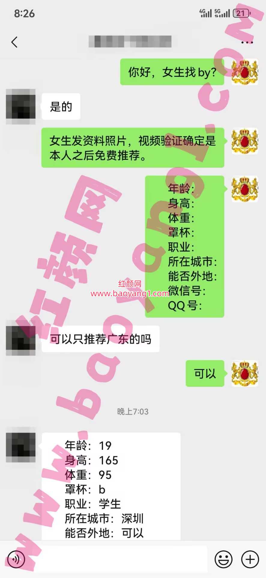 1.jpg 2.jpg 重点推荐:深圳女孩,19岁,在深圳读技校。清纯可爱型女孩,纯纯的,很漂,身材匀称。性格很好,温柔乖巧。PS:已通过客服视频验证,确保真实。可以去外地,有意的会员速联系吧。